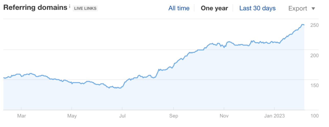 Growth of high-quality backlinks from relevant referring domains