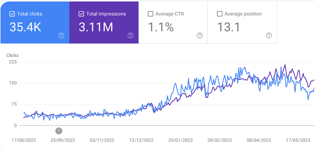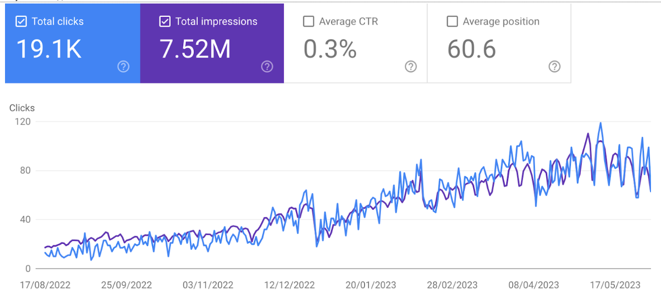 Growth of impressions and clicks in search results