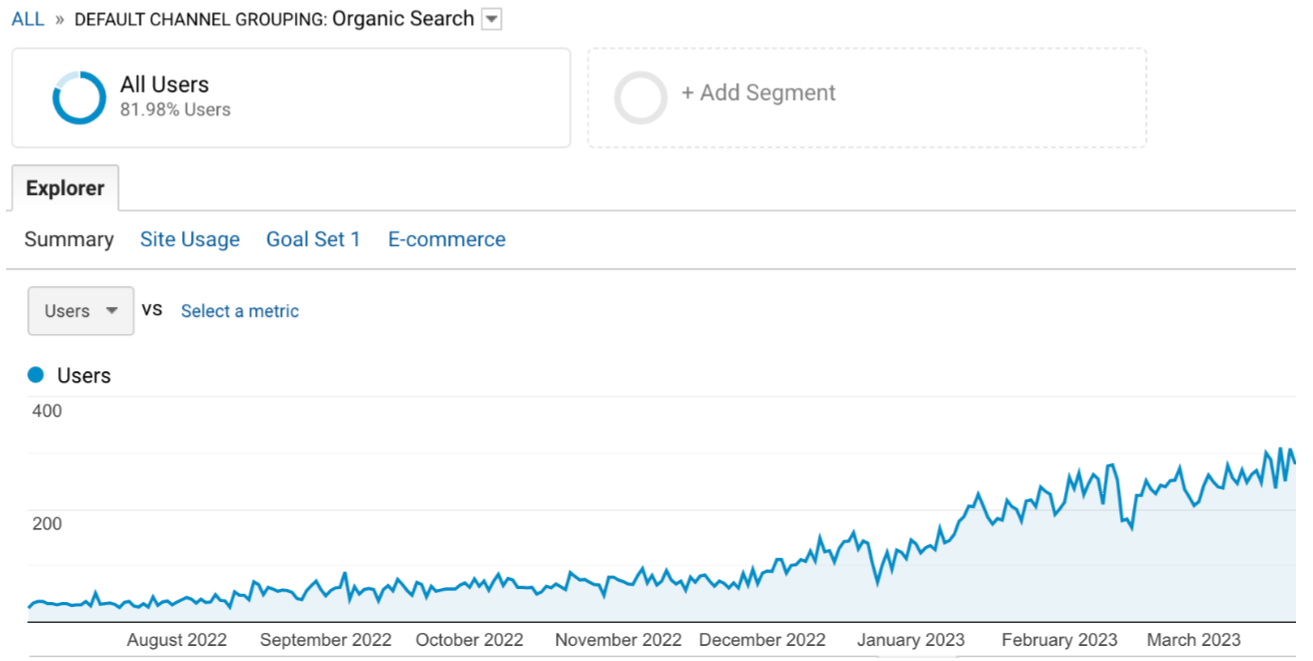 Increasing organic traffic to a website by Google Analytics