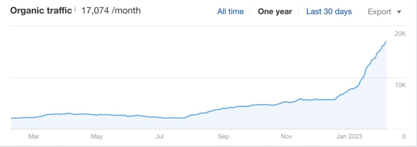 Increasing organic traffic to a website by Ahrefs