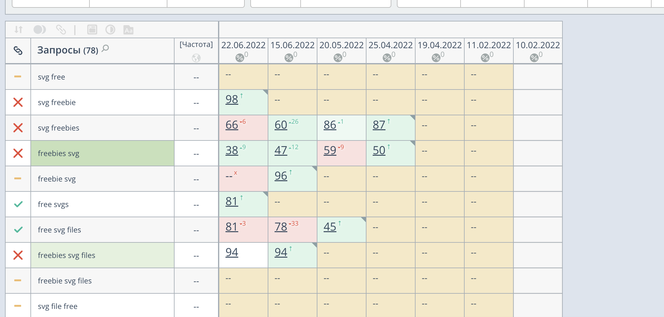 The first position scan shows that the site is not ranking for important keywords