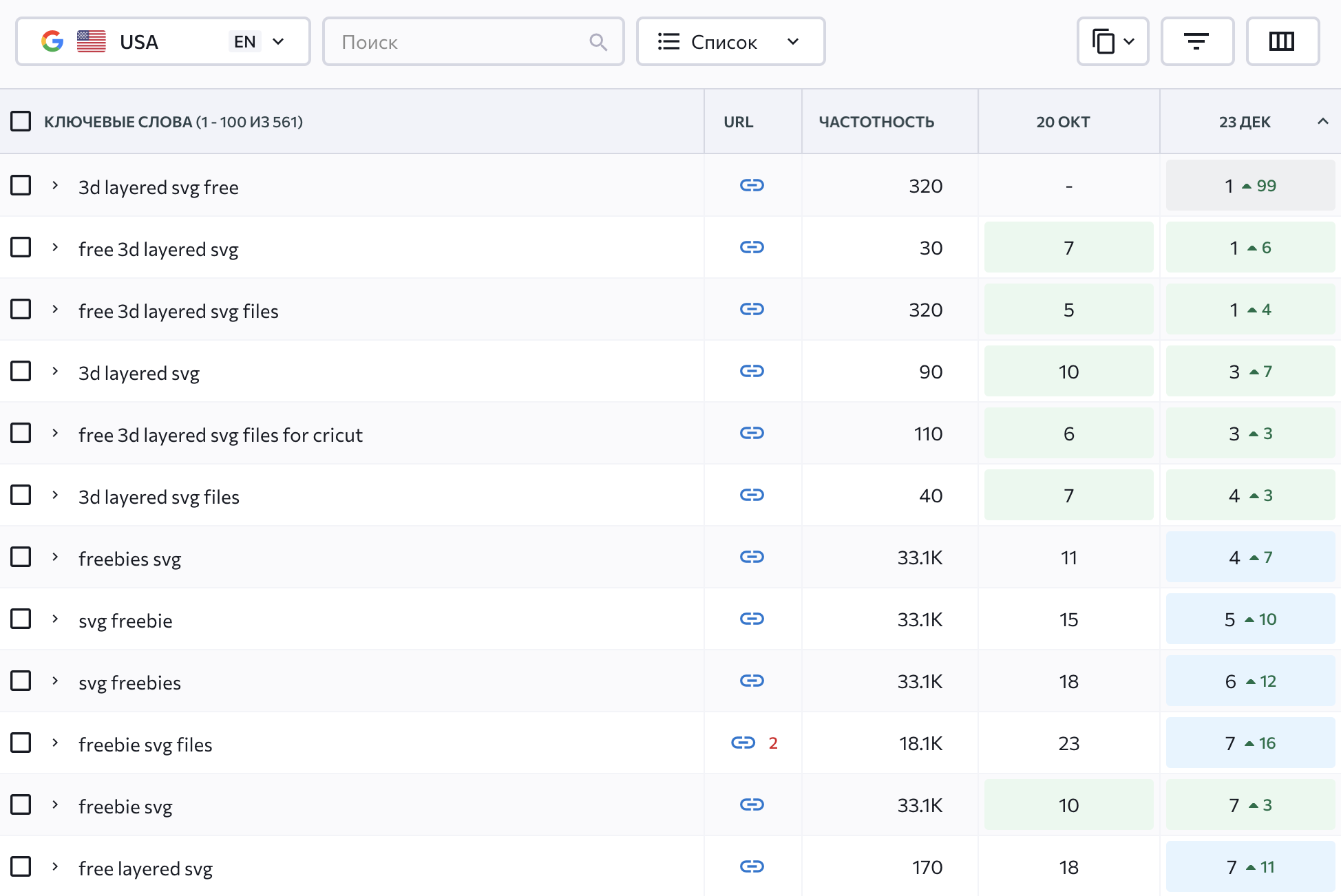 Case: Brought the TOP-1 and increased organic traffic to the vector image site by 381.48% in the USA