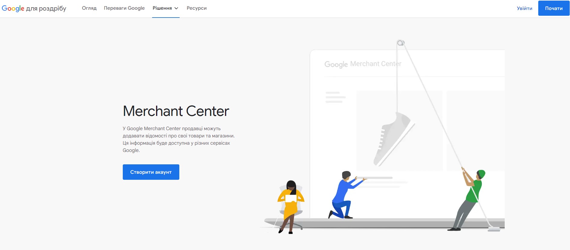Перше, що необхідно зробити, – це створити обліковий запис у Merchant Center (інструмент для завантаження даних про магазин, бренд та асортимент товарів).