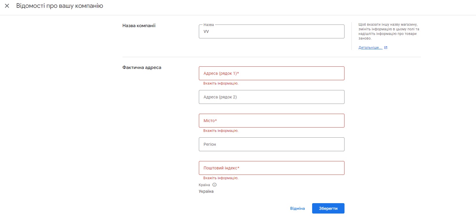 Потім — заповнити такі обов’язкові поля: