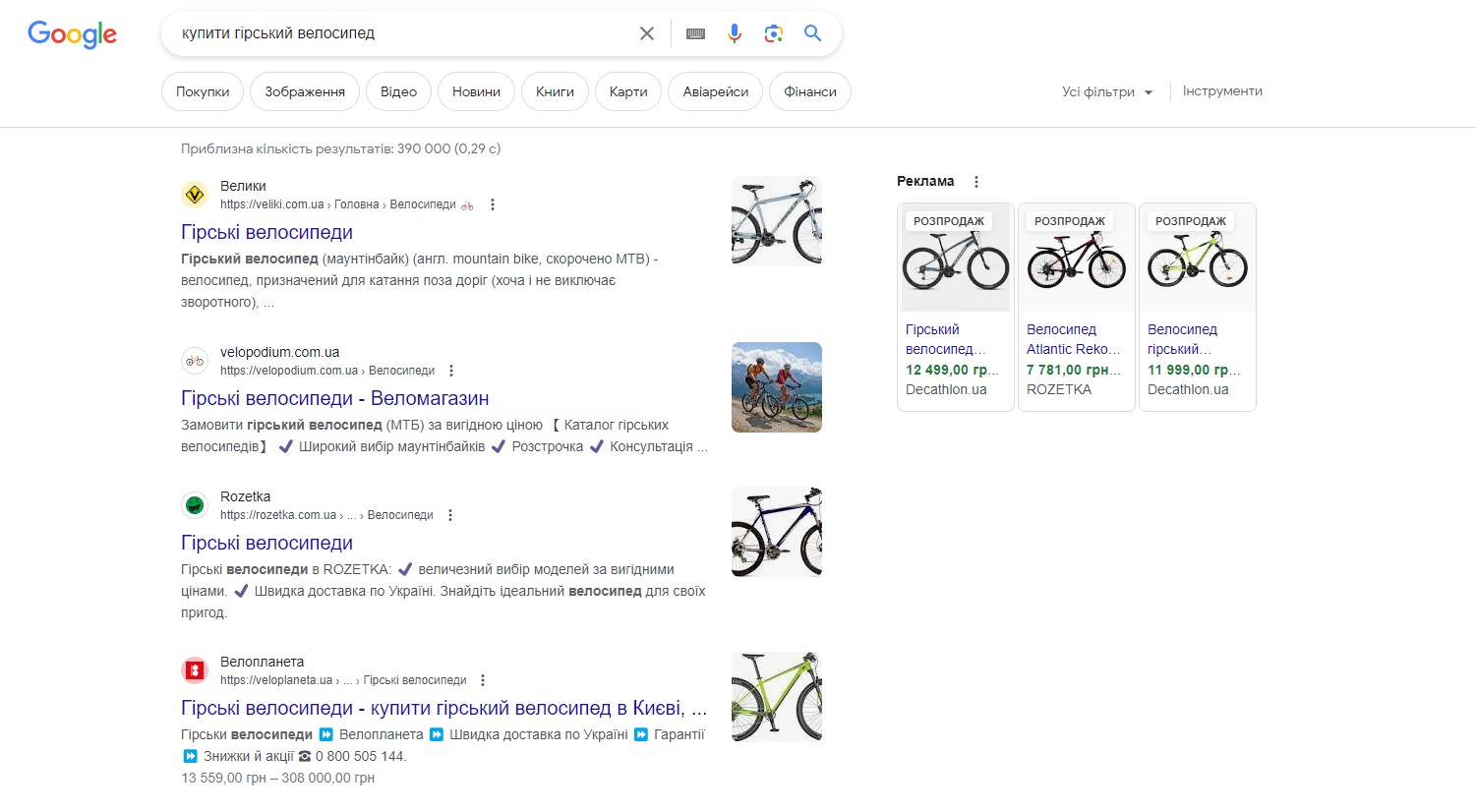 Попереду весна, і ви хочете купити новий велосипед. Ви починаєте шукати відповідний варіант, заходите в Google і вводите в пошуку фразу: “купити гірський велосипед”. На екрані комп’ютера з’являється безліч різних рекламних блоків із товаром, який вас цікавить. Ви бачите зображення велосипедів, ціни, а також назви магазинів, у яких їх можна придбати. І з великою ймовірністю ви клацнете на одне з таких оголошень, щоб детальніше ознайомитися з інформацією. Як ви зрозуміли, ці оголошення і є товарна реклама — ефективний інструмент для просування товарів в Інтернеті.