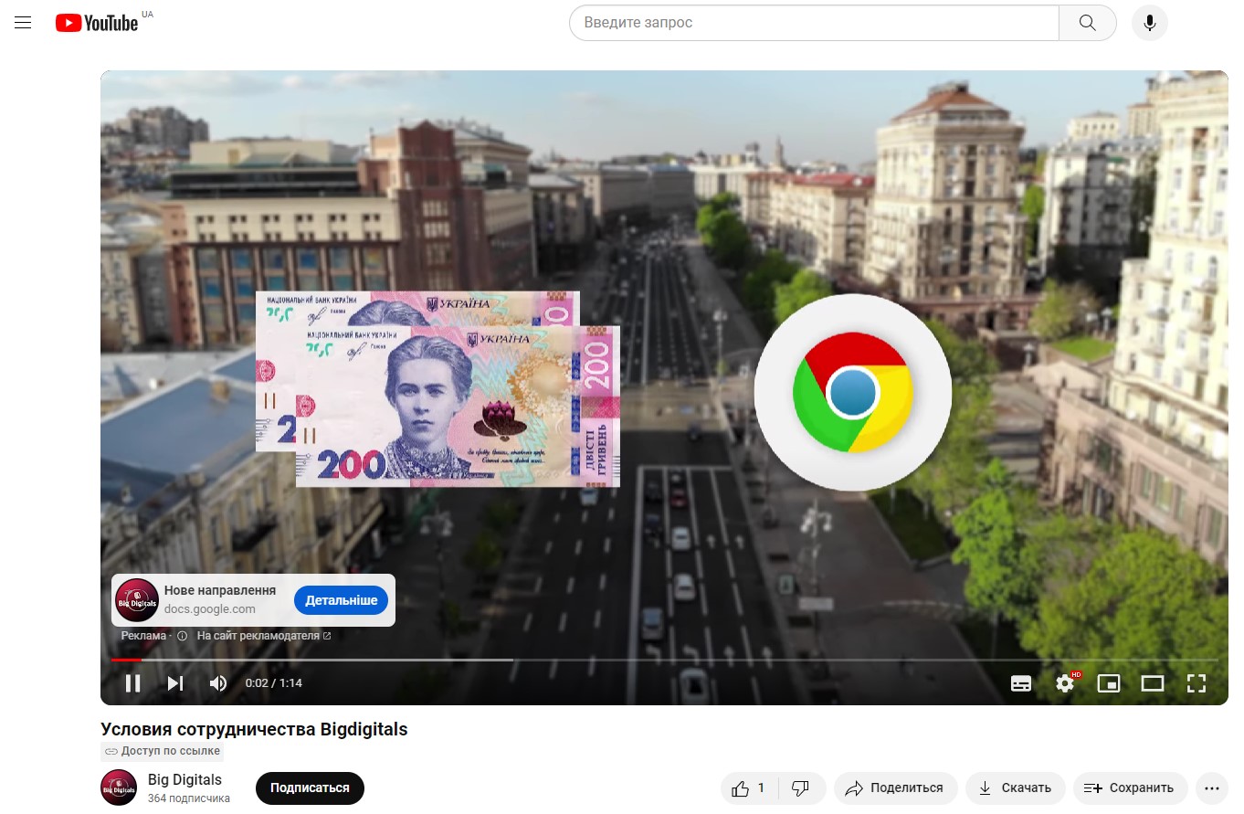 Ось так рекламні оголошення виглядають у пошуковій видачі та в YouTube:
